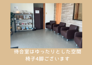 待合室はゆったりとした空間で、椅子も4脚ご準備しております😊